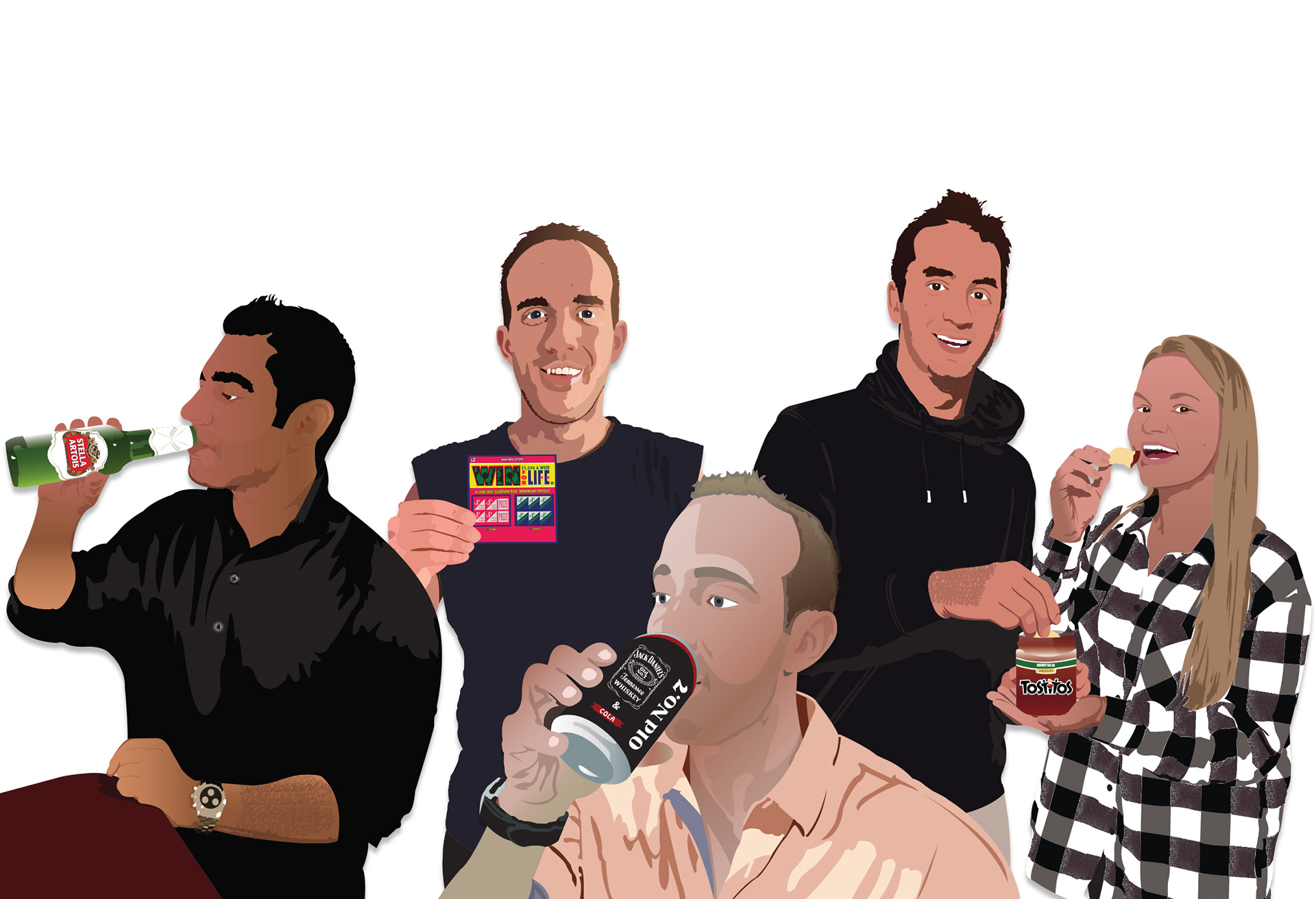 Vector-based illustrations that I've created. I draw by hand, as well.